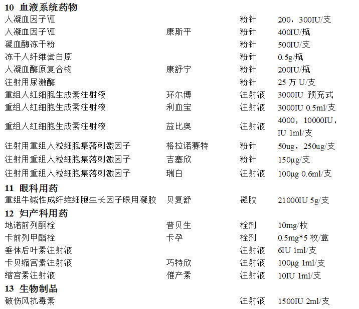 冷藏藥品目錄介紹